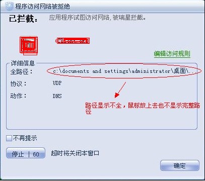 测试发现程序访问网络被拒绝提示框显示路径不全,连鼠标停留在路径上也不显示完整路径,如图(程序版本:22.00.00.55)