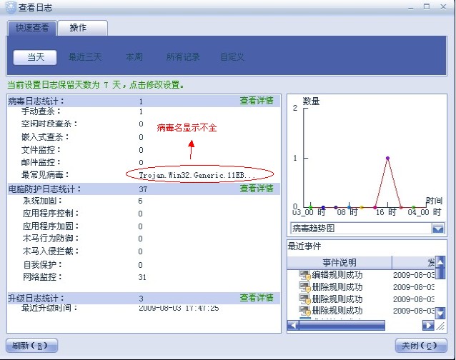 RIS查看日志病毒名显示不全,将查看日志最大化后也是显示不全(程序版本:22.00.00.57),如图
