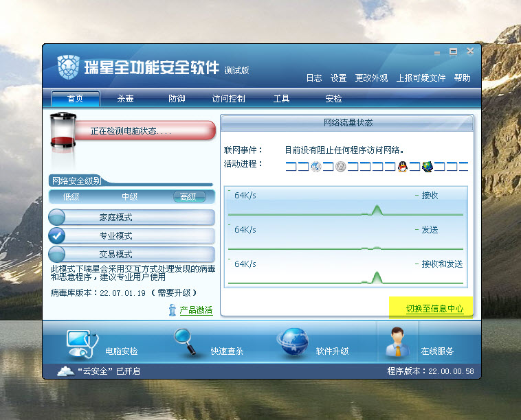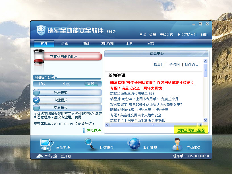 使用过瑞星2010全能版的朋友,估计都发现了“切换至网络流量图”的功能。