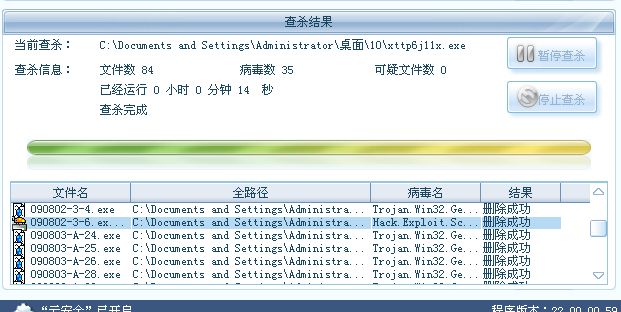 笔者一共搜集了37个病毒样本 瑞星扫描引擎为最高级别