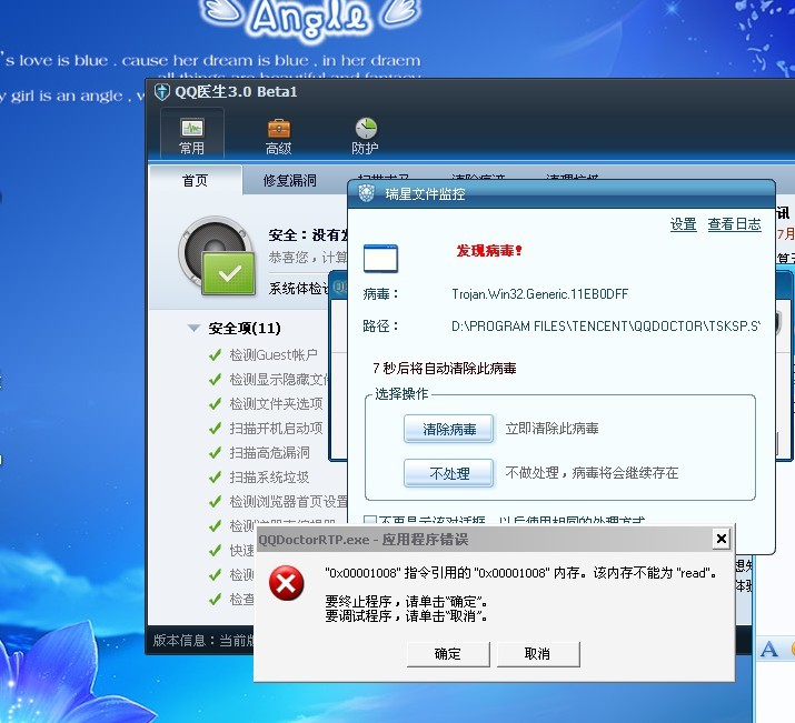 回复:瑞星全功能安全软件2010二阶段公测,恶意网址拦截可能有问题?qq医生也没法用了?