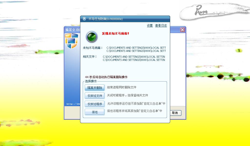 安装过程中 瑞星 木马行为误报