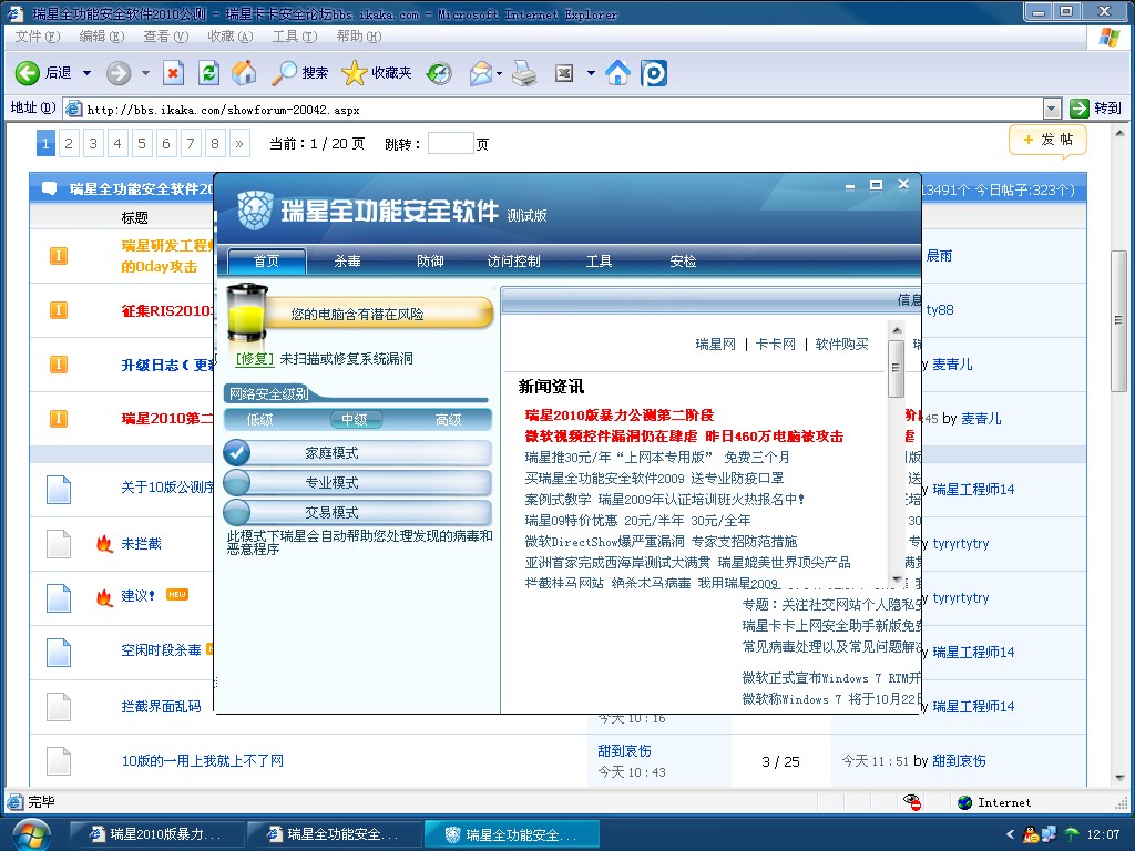 感觉没之前使用的瑞星软件(2009)反应快,只开了一个QQ而已,怎么就反应这么慢呢。可以说的是机子配置可以,使用2009时,很快的。配置如下:
