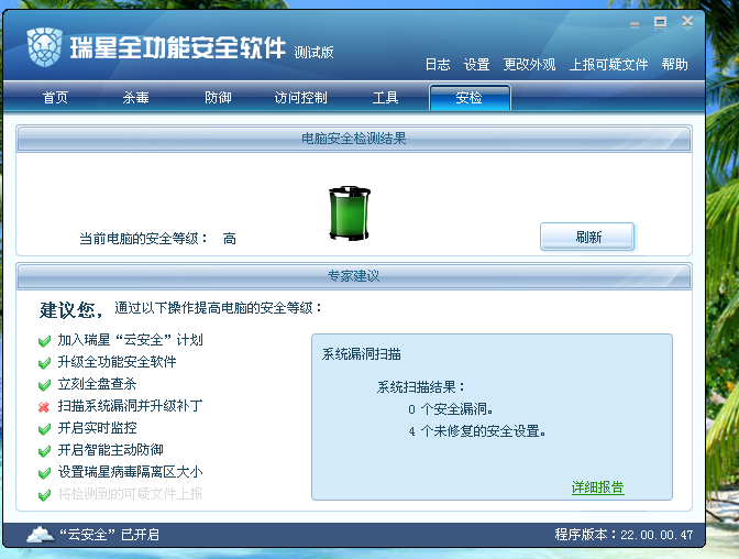 尽管卡卡提示没有未修复的安全设置,但瑞星一直在提示