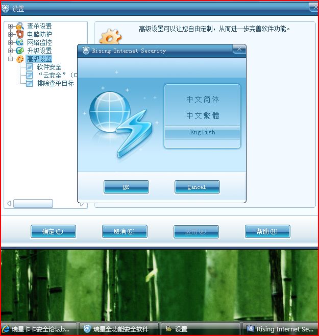 进入高级设置选取英语!首先是选择见面的变化!OK后马上变得是主界面,设置没有变!还是那个“设置”  需要再次进入设置,它才变成英语!