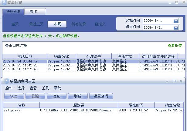 如图,每次打开迅雷就发现这个毒。。但病毒隔离区却是以第一次发现的日期记录的。