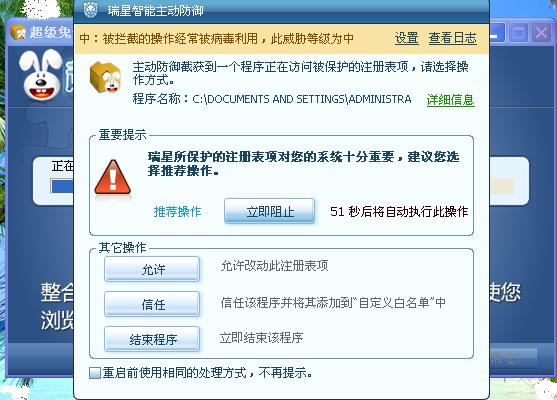 是点允许就可以了,但如果安装时无人,瑞星岂不是要阻止了