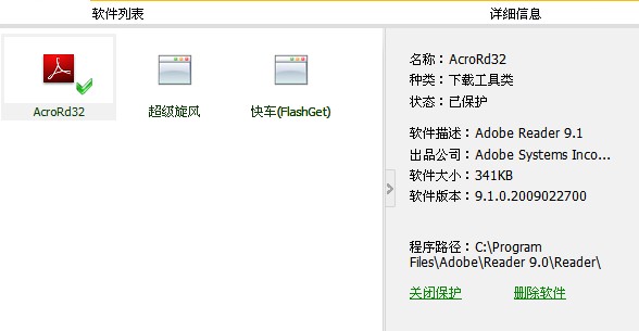 当添加自定义的保护软件的时候会有删除软件的按钮
