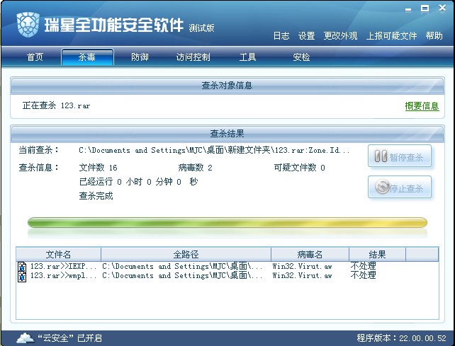 程序版本22.00.00.52 病毒库版本22.06.02.04