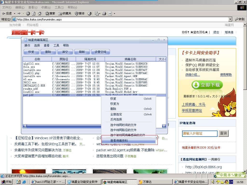 病毒隔离区里的查看病毒资料选项点击后没反应