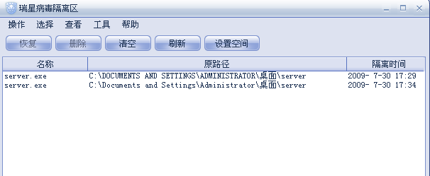 但病毒隔离区却对这个文件备份了两次,而且路径不同(路径中英文大小写不同)。