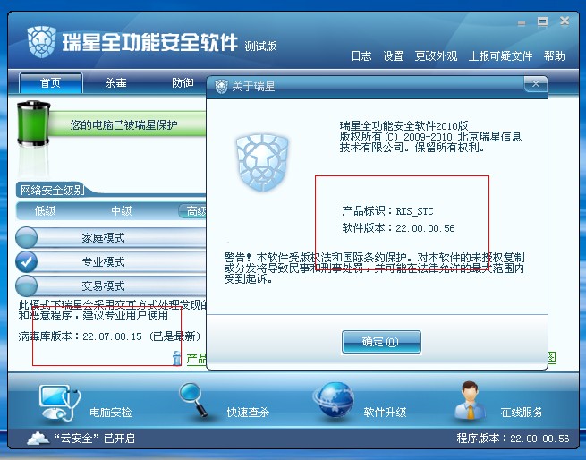 呵呵.更新到瑞星病毒库22.07.00.17.就可以