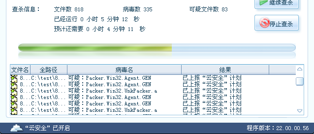 可以通过“安检”看到,需要上报的文件在 “将检测到的可疑文件上报”中。