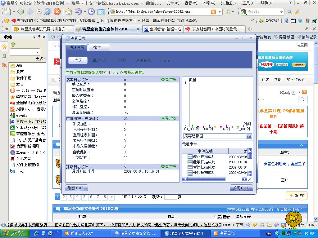 发完瑞星帖刚刚升完级,瑞星版本20.00.00.57,系统是xp sp3