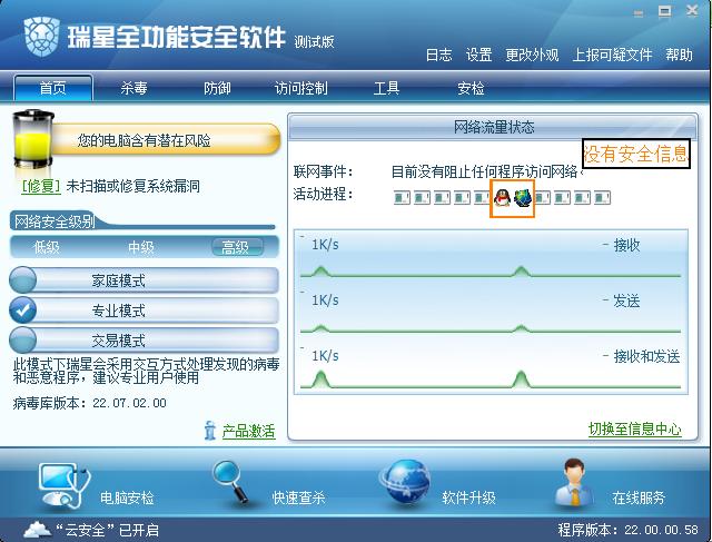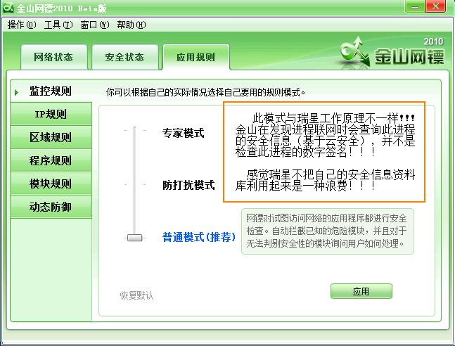 希望瑞星也提供 此模式,已让用户选择不同的环境,提供不同的保护!!!