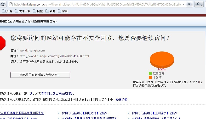 前几日遇到过一次,后来点继续访问后也不见有其他报警,再重新进入也没有提示了