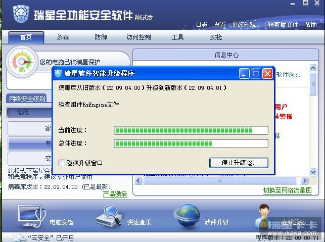 经常有朋友说自己瑞星很久没升过级,点击软件升级却提示最新版本,可以看看这个