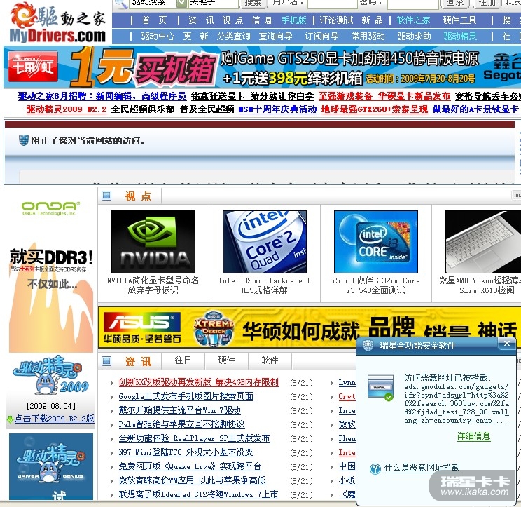 只我我访问驱动之家,瑞星就会提示“访问恶意网址被拦截”是怎么回事?
