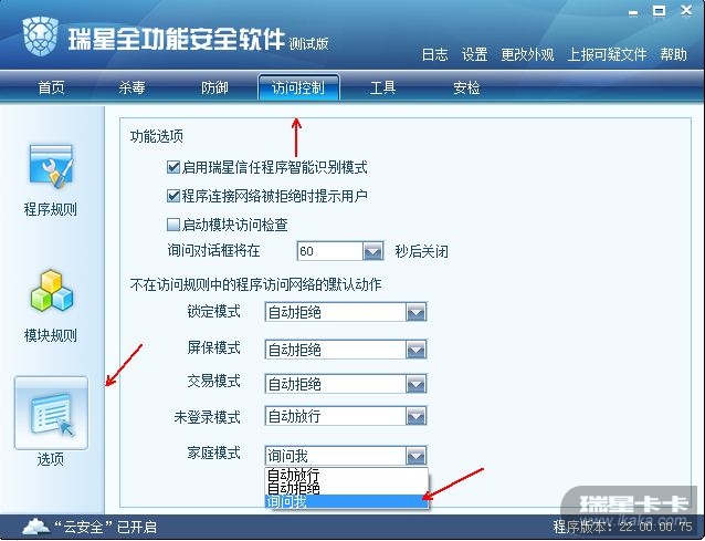 RIS22.00.0.76版家庭模式默认动作已改为“询问我”