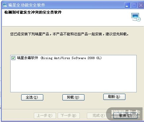 在安装2010的时候 提示安装以前的瑞星得卸载··