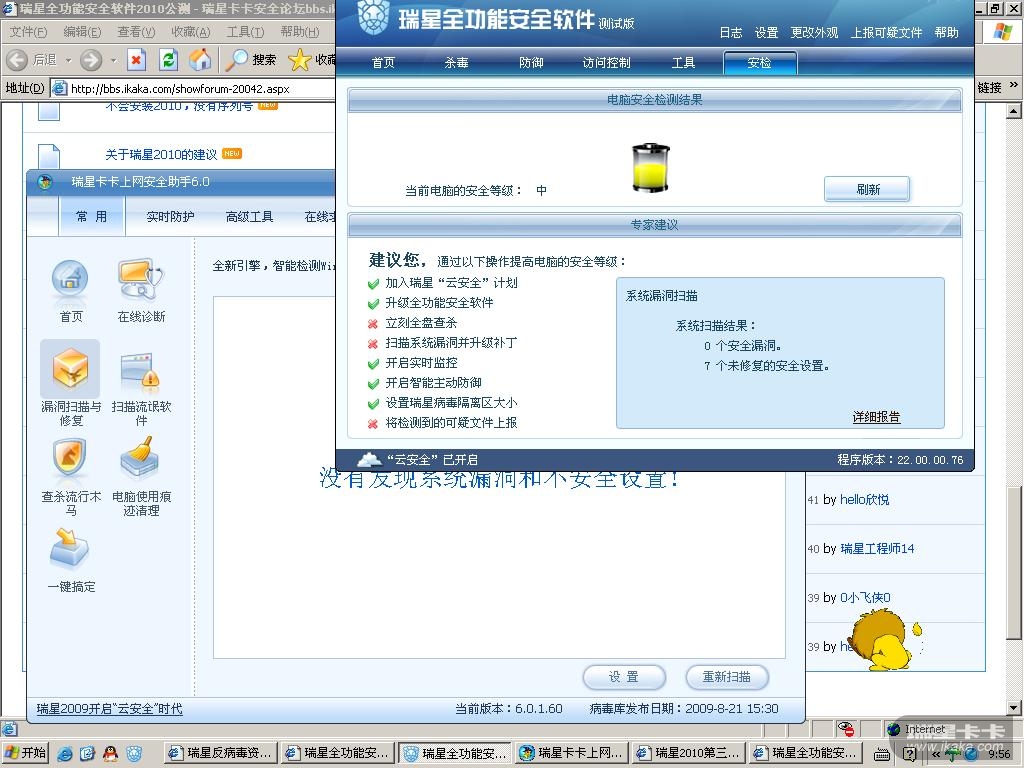 安检中未扫描系统漏洞及升级安全补丁。