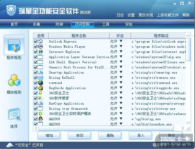 第二 我使用的是全功能版本,其中有一项功能叫“访问控制”功能,相当于一个防火墙,但我很纳闷儿为什么没有堵住端口,而只堵了程序?