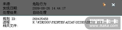 刚刚装打印机驱动的时候瑞星突然报打印机驱动安装程序有危险行为,由于装完驱动后要重启,所以不能提供截图,抱歉啊,工程师,在这我把样本提供上来。