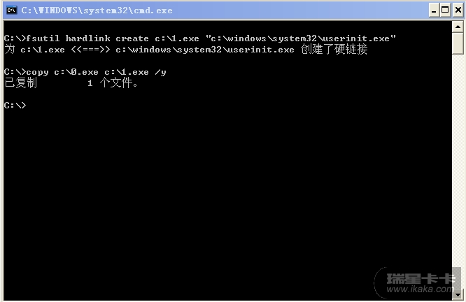 此userinit.exe就是C盘根目录下事先创建的空文件0.exe: