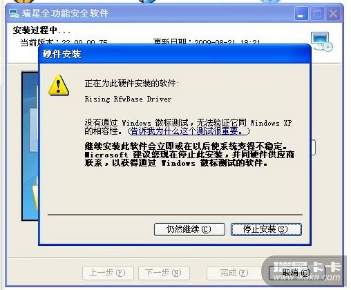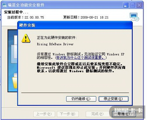 瑞星全功能安全软件2010版安装时出现的问题