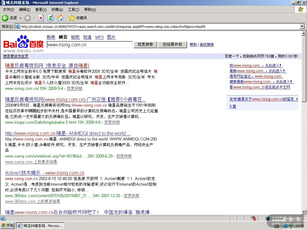 瑞星网站无法连接的图1(在地址栏中输入瑞星的网址后回车,网页会自动跳到百度,然后再点瑞星网站就会出现图2无法连接)