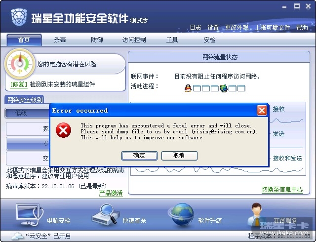 输入完验证码确定后,再按下设置界面下面的确定,回到10版主界面,就弹出了上面的错误窗口!