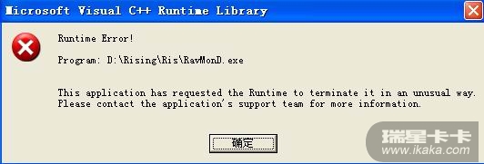 开机后出现图中错误,不知这个程序是瑞星的什么程序,图中的话翻译过来后说这个程序的运行需要终止一个异常的方式,不知是什么意思,而且关闭错误警告后它还会出来,请明白的大虾告诉下。