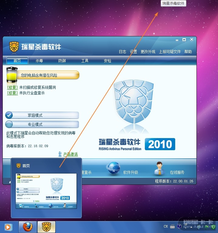 按理说程序的文字应当是在缩略图上面才是,可看看瑞星。。。