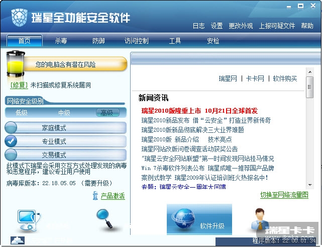 用鼠标托动RIS2010主界面标题栏至windows 窗口边界,窗口将最大化,然后再从边界上托出,瑞星窗口还原,但主界面却花得不成样子了。。。