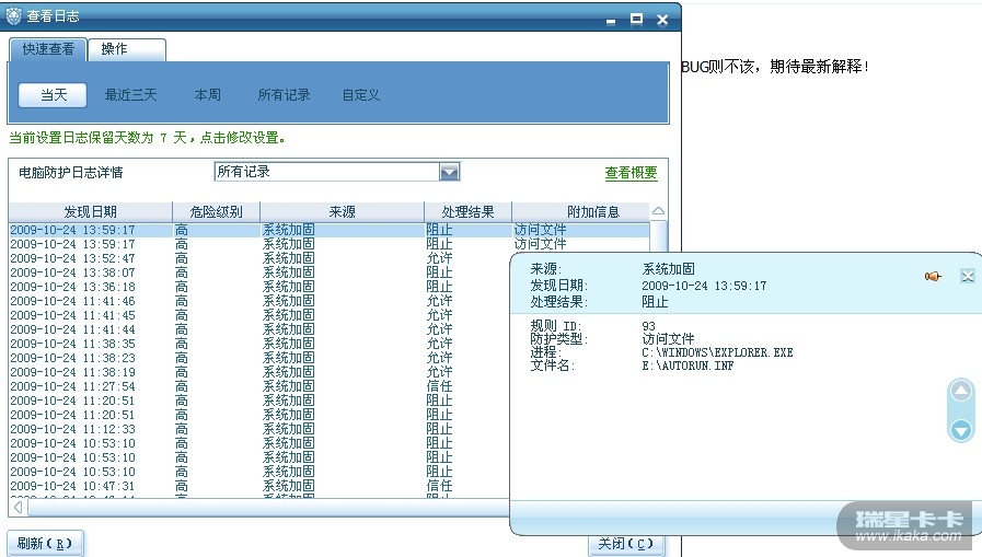 常规维护IE,用360修复了IE关键位置,RIS主防没弹出拦截报告。