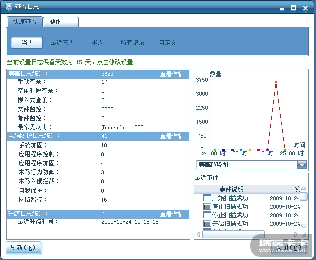 待提示结束以后日志显示文件监控清除了超过2000个病毒