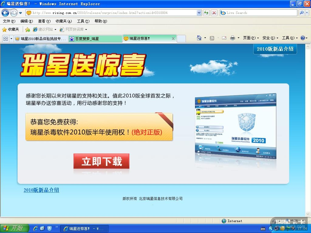 今天给我朋友装免费半年的瑞星,发现下载有问题,是在如图下的,下载后打开程序,直接弹出这个网站