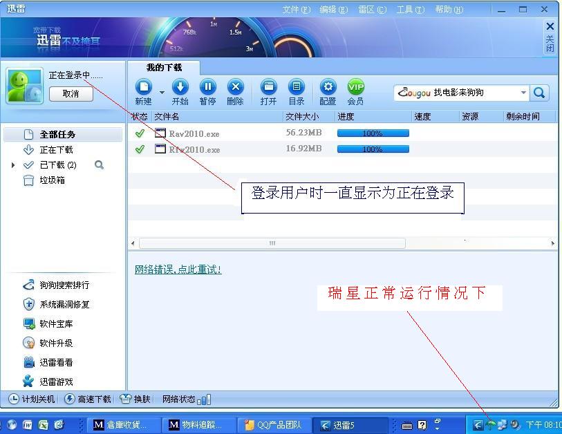 我知道是瑞星的恶意网站拦截模块把迅雷拦截了,在模块里添加排除程序即可