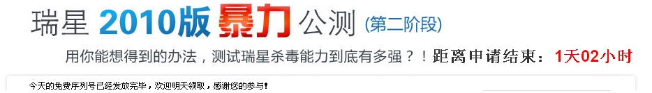 “感谢您参加瑞星2010版第二阶段公测活动,请您在7月31日前访问如下地址获取您的瑞星2010版序列号等信息: