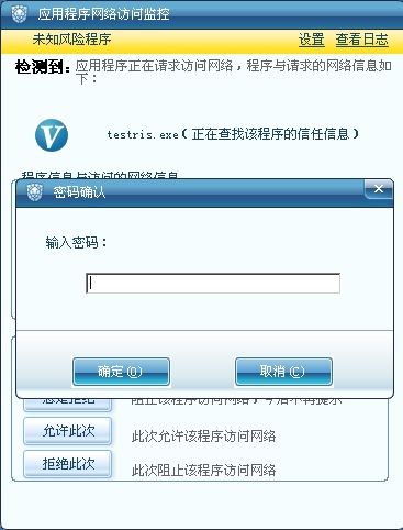 2、设置软件密码后(默认好像是全部选定),遇到程序访问网络,选择总是拒绝时要输入密码才行,不大方便。