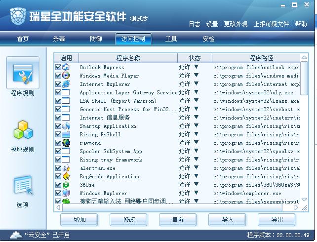 打开瑞星切换选项卡里,有时要等上2秒至3秒才能出现内容,主要表现在访问控制这里,