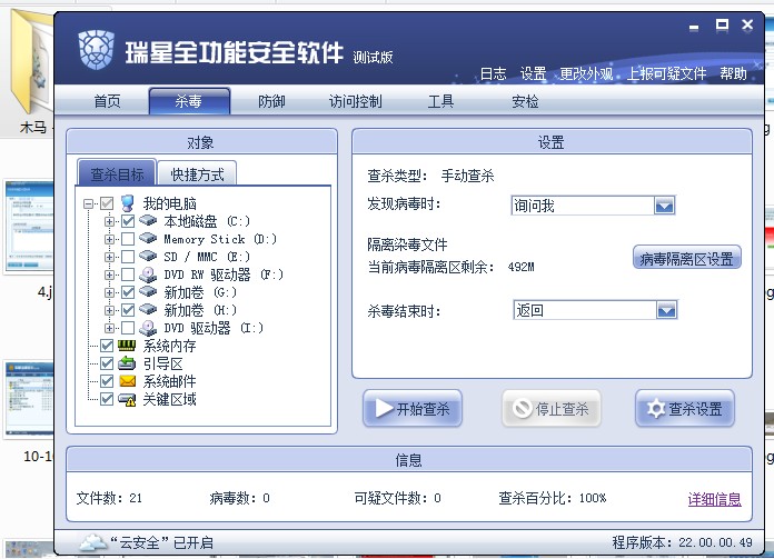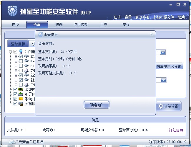 因为是多次查杀,再次出现此类结果,0秒查杀,虽然理由大家都知道,但不如换成其它结果或样式,如提示:本文件夹或文件刚查杀过,不需要再次查杀: