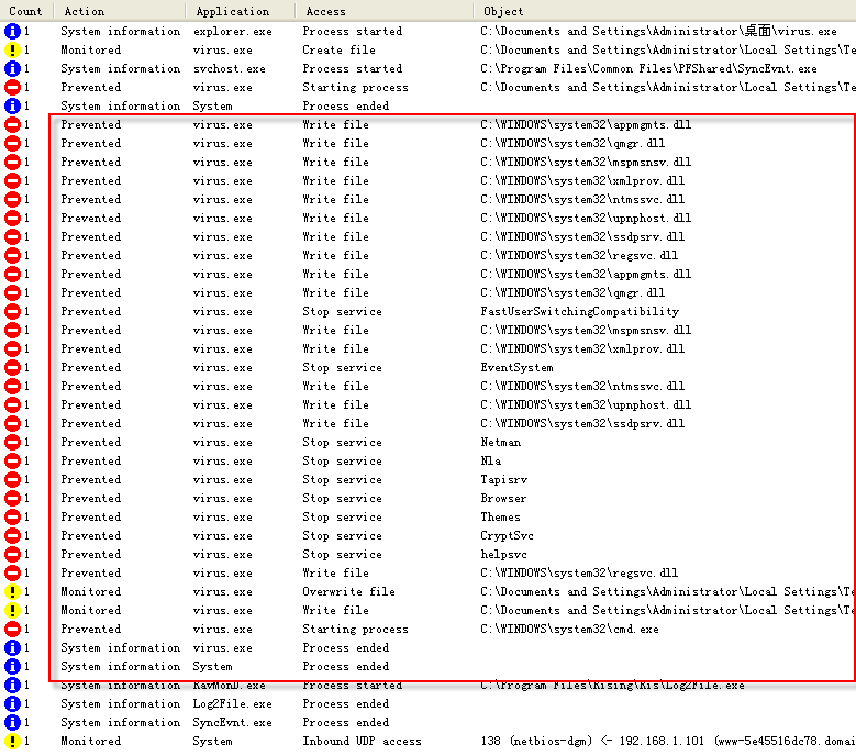 这个杀瑞星的现象跟那些有点不同,虽然瑞星行为防御提示拦截了~而且点删除了~但最后也是被kill了~