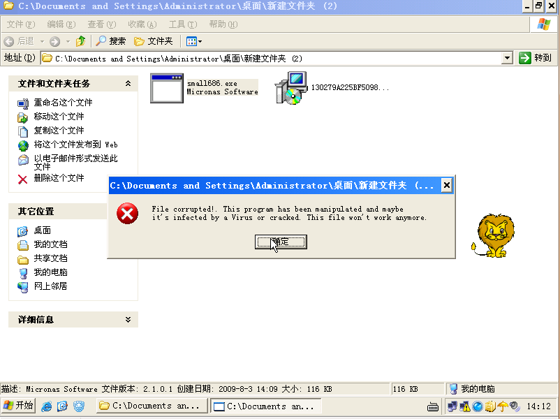 过了一会,提示有危险动作。单击结束程序,再就没动静了,好像病毒被kill了。恩,瑞星很好很强大。