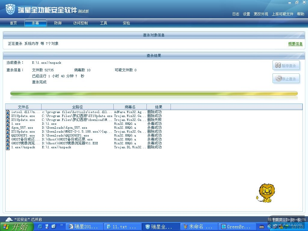 瑞星全功能安全软件2010杀毒功能很好,帮我找出了10个病毒,连镜像备份里的病毒都消灭了。比360安