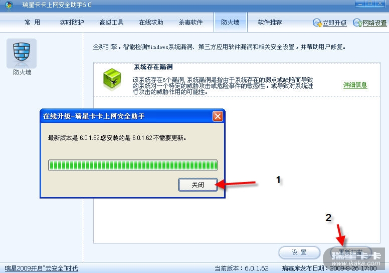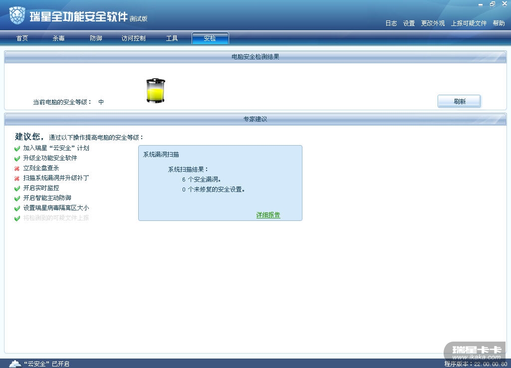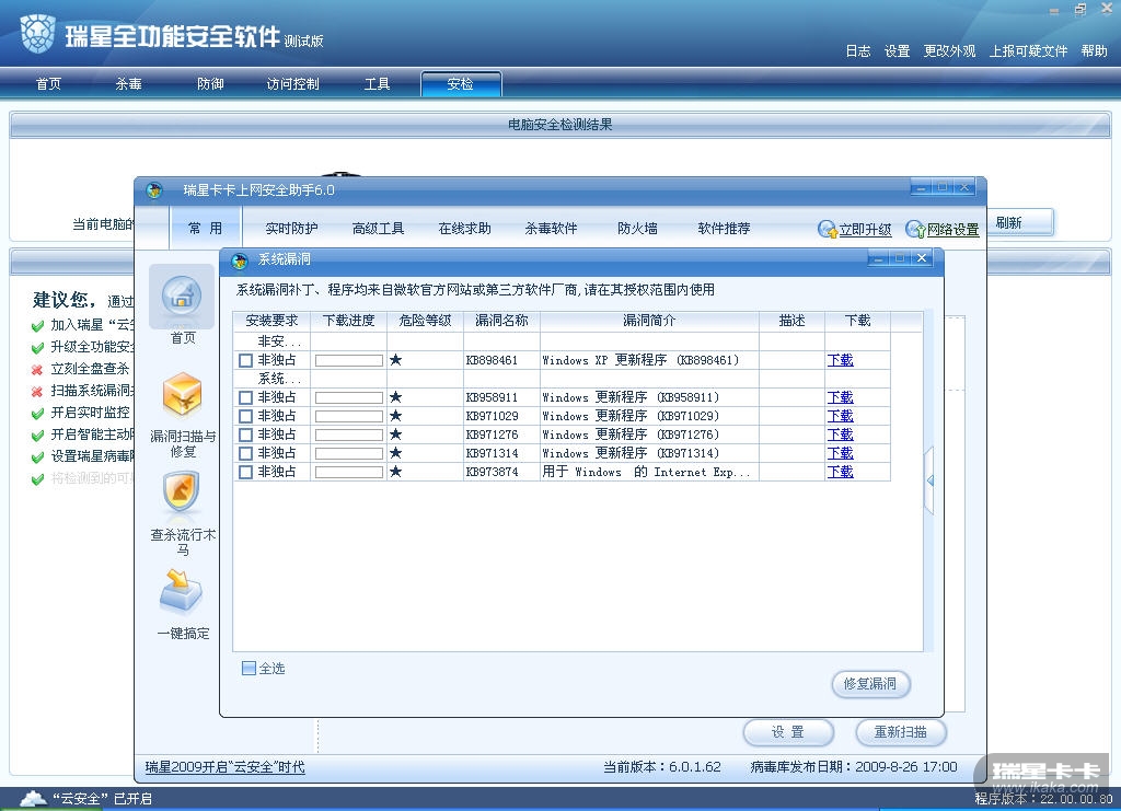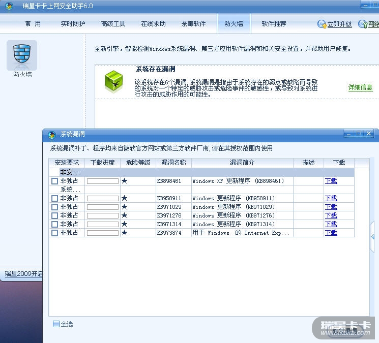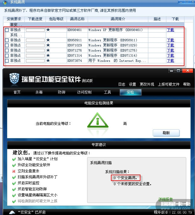 瑞星工程师远程服务已经解决了这个问题。卡卡助手不再报系统漏洞。