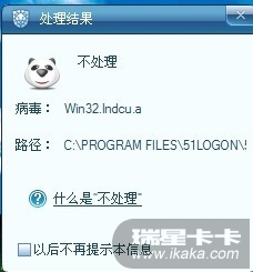 随后瑞星全功能安全软件就弹出如下提示,截图如下: