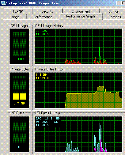 再来一张瑞星软件整个升级过程中的系统资源使用图: