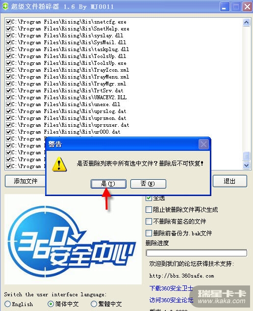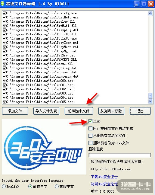 运行附件中的360粉碎机,然后拖动瑞星安装目录里的各种文件,然后执行粉碎操作。