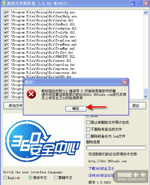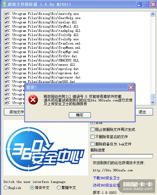 今天收到网友反馈说能使用金山清理专家和360粉碎机等软件能粉碎瑞星的文件,于是就下载了金山清理专家实验,不过不知道是什么原因,金山清理专家的粉碎功能,所以测试就发现360能正常运行及复现可以删除瑞星的文件。